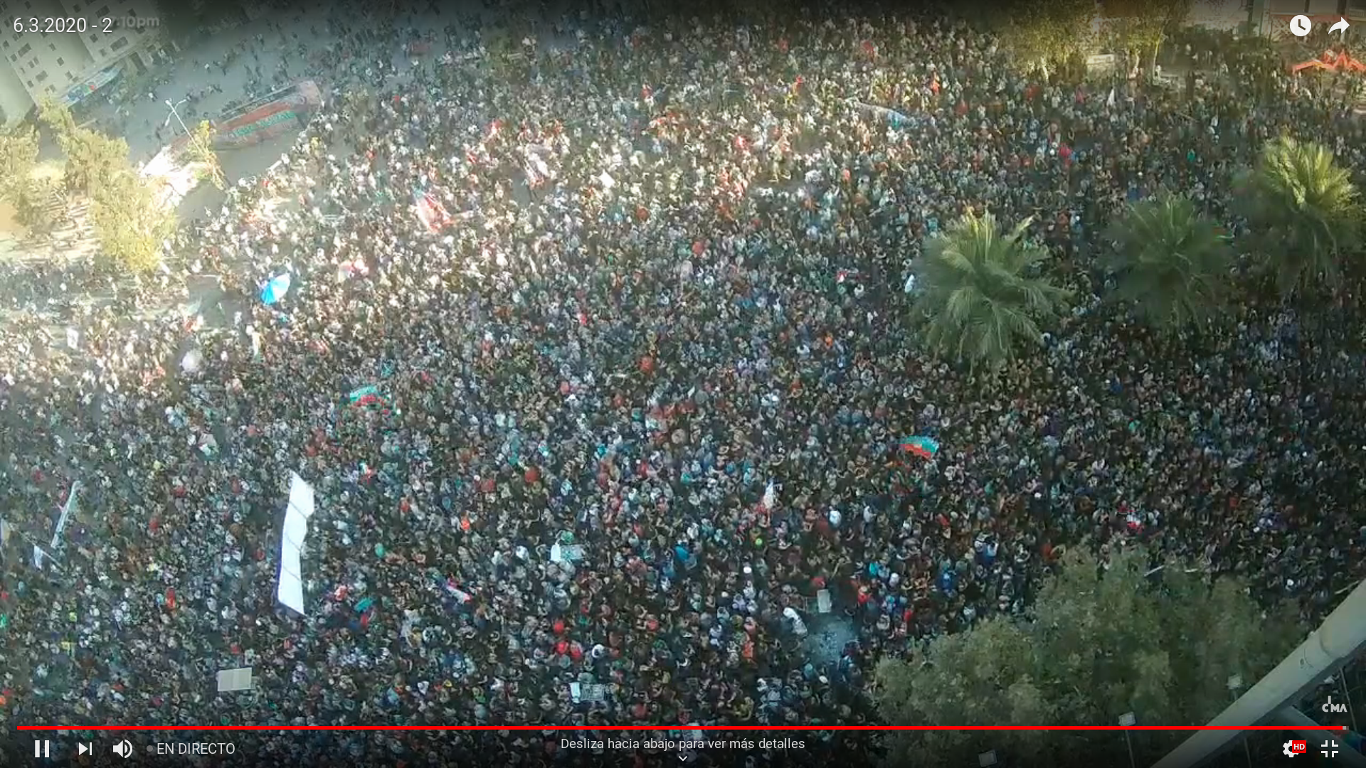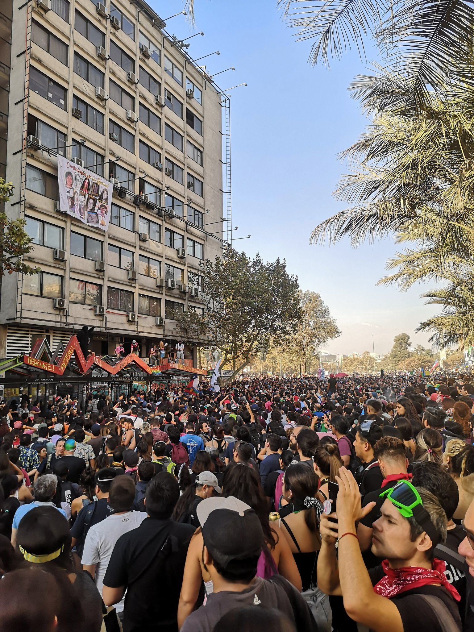 Πρώτη Παρασκευή του Μάρτη. Δεκάδες χιλιάδες άνθρωποι γέμισαν πάλι την Πλατεία Αξιοπρέπειας, πλέον γνωστή και ως σημείο μηδέν του Σαντιάγο, με σκοπό να διαδηλώσουν την αντίθεσή τους σε αυτό το σύστημα και τις βίαιες εκφράσεις του.