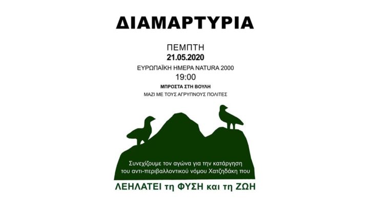 Ανοιχτό κάλεσμα για διαμαρτυρία με αφορμή την Ευρωπαϊκή ημέρα Natura 2000 – 21 Μαΐου 2020, κάνουν πολίτες που εναντιώνονται στο νέο αντιπεριβαλλοντικό νομοσχέδιο του υπουργείου Περιβάλλοντος και Ενέργειας που ψηφίστηκε προ δύο εβδομάδων.