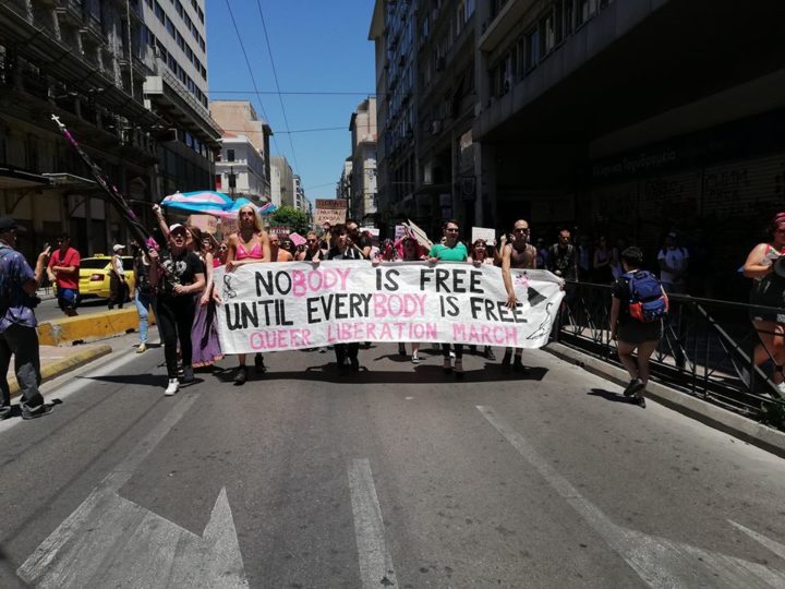 Το Σάββατο 27 Ιουνίου 2020 διοργανώθηκε το πρώτο αθηναϊκό Queer Liberation March. Το Queer Liberation March ξεκίνησε στη Νέα Υόρκη τον Ιούνιο του 2019 με στόχο την απεμπλοκή των διεκδικήσεων της ΛΟΑΤΚΙΑ+ κοινότητας από την καπιταλιστική κανονικότητα, η οποία λειτουργεί δομικά ως μηχανή παραγωγής αποκλεισμών, επισφάλειας, και ευαλωτότητας και ως χειριστική βιο-νεκρο-πολιτική.[1] Πρόκειται για μια διοργάνωση που τίθεται ενάντια στην οικειοποίηση των ριζοσπαστικών αγώνων και της μαχητικής ιστορίας χειραφέτησης του queer κινήματος από τις πρακτικές εμπορευματοποίησης της καλούμενης «ετερότητας» που απαντούν πλέον σε mainstream διοργανώσεις με αντίστοιχο προσανατολισμό. Η Μυρτώ Τσιλιμπουνίδη, μέλος της συνέλευσης του Queer Liberation March Αθήνας, μίλησε για την αθηναϊκή διοργάνωση, πριν την πραγματοποίησή της στην Άντζελα Δημητρακάκη, στο διαδικτυακό περιοδικό marginalia.