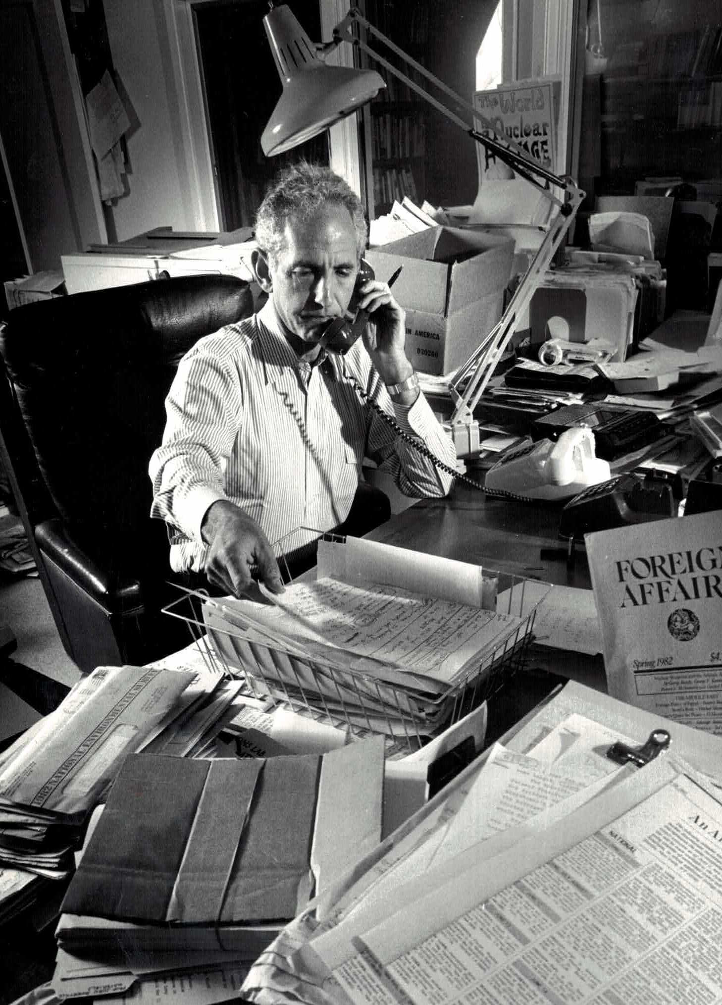 Ο Ντάνιελ Έλσμπεργκ, στο γραφείο του, δουλεύοντας το τελευταίο του βιβλίο, φωτογραφία από την επίσημη ιστοσελίδα του.