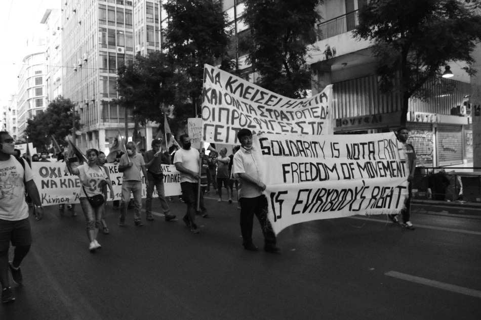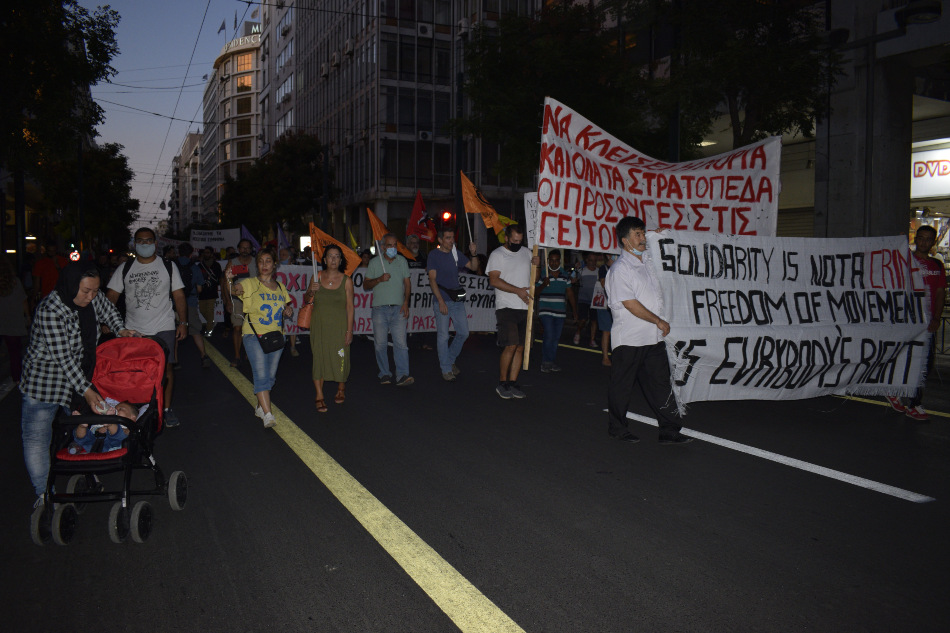 Πορεία αλληλεγγύης και διεκδίκησης πραγματοποιήθηκε σήμερα από την πλατεία Βικτωρίας με κατεύθυνση τη Βουλή, με αφορμή τα τελευταία γεγονότα της ολικής καταστροφής του προσφυγικού καταυλισμού της Μόριας που μέχρι πρότινος διέμεναν 20.000 άνθρωποι.