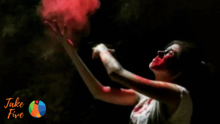 Η ενότητα Take five, είναι μια συμβολική έξοδος από τον χρόνο που τρέχει. Σηματοδοτεί μια απόπειρα «ακρόασης» έξω από το συνεχές του χρόνου, όπου το κάθε πρόσωπο «είναι» και «μετράει» (αντί του χρόνου) ως δυναμική διαδρομή με το ιδιαίτερο και μοναδικό που φέρει στη διαχρονία και συγχρονία του με τον κόσμο.