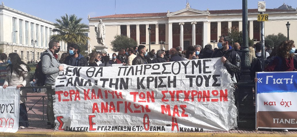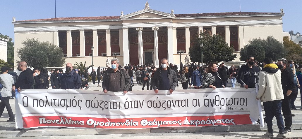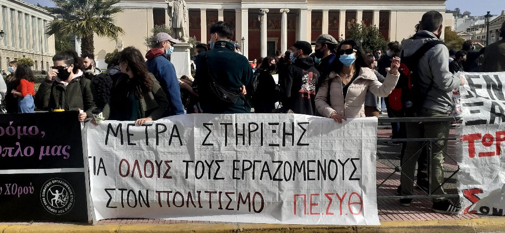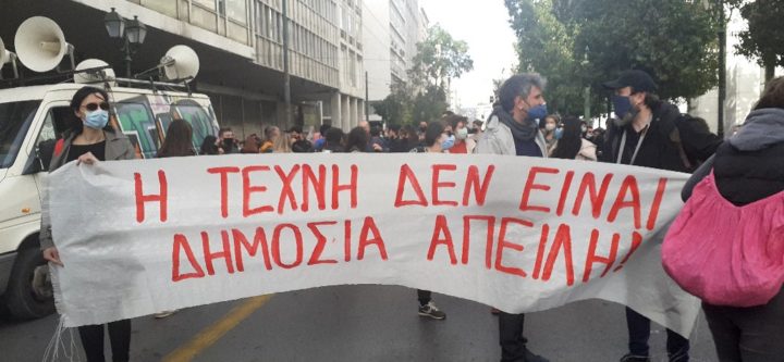Οι άνθρωποι του πολιτισμού, της τέχνης και του θεάματος βρέθηκαν σήμερα πάλι ξανά στο δρόμο. Διεκδικούν μέτρα στήριξης για όλους τους εργαζόμενους στον πολιτισμό, ένας κλάδος που έχει πληγεί από την πανδημία και εξαιρέθηκε κατά το πρώτο κύμα αποζημιώσεων που έδωσε η κυβέρνηση την Άνοιξη του 2020. Σε παρόμοια πορεία με τη χθεσινή κινητοποίηση των ανθρώπων της εστίασης θεωρούν ότι η κυβέρνηση Μητσοτάκη θα μπορούσε να έχει αντιμετωπίσει με διαφορετικό τρόπο την πανδημία και να έχει αποφύγει τα απανωτά λοκντάουν που έχουν παραλύσει τη ζωή μας και έχουν κουράσει και ταπεινώσει οικονομικά μεγάλη μερίδα του ενεργού εργασιακά πληθυσμού.