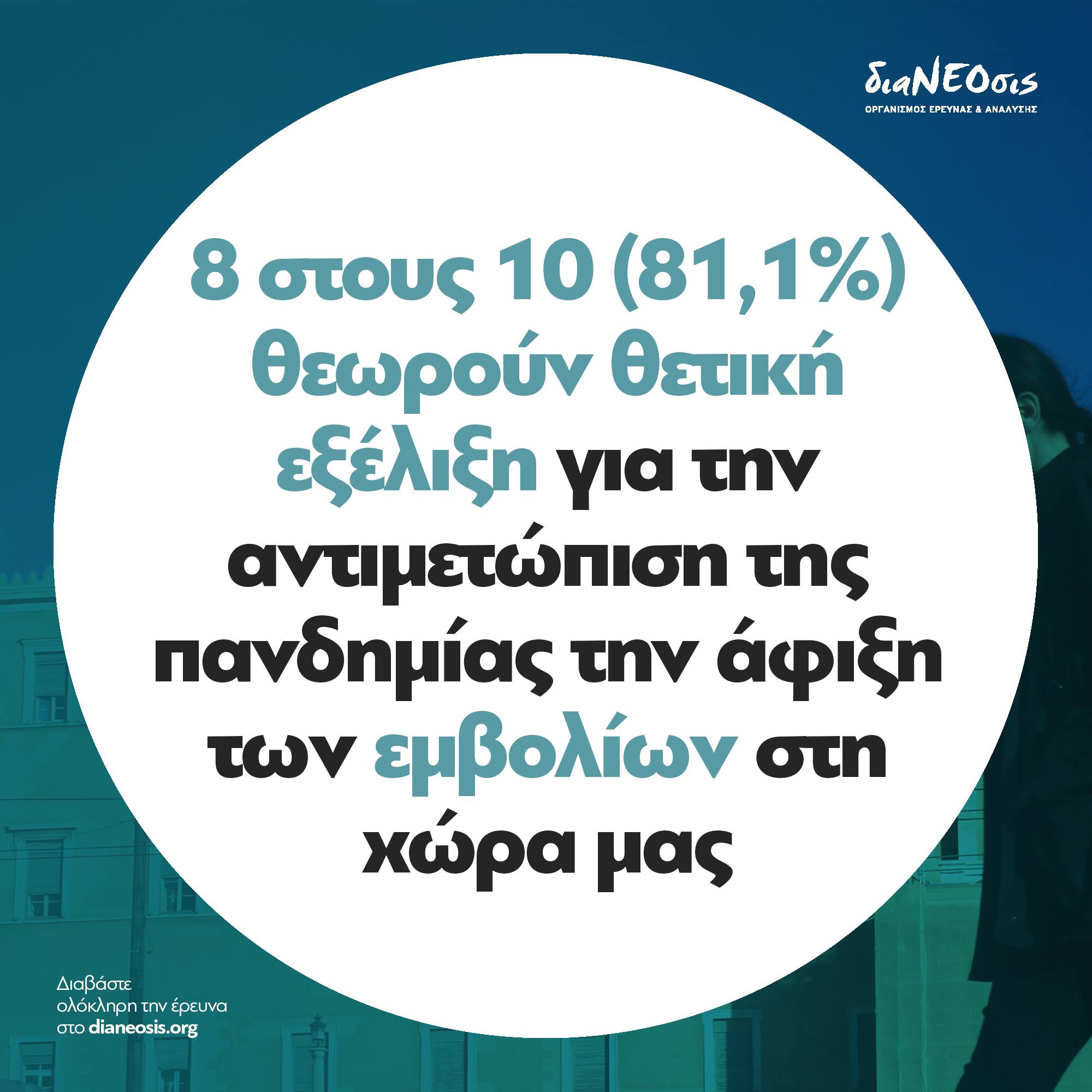 8 στους 10 (81,1%) θεωρούν θετική εξέλιξη για την αντιμετώπιση της πανδημίας την άφιξη των εμβολίων στη χώρα μας.