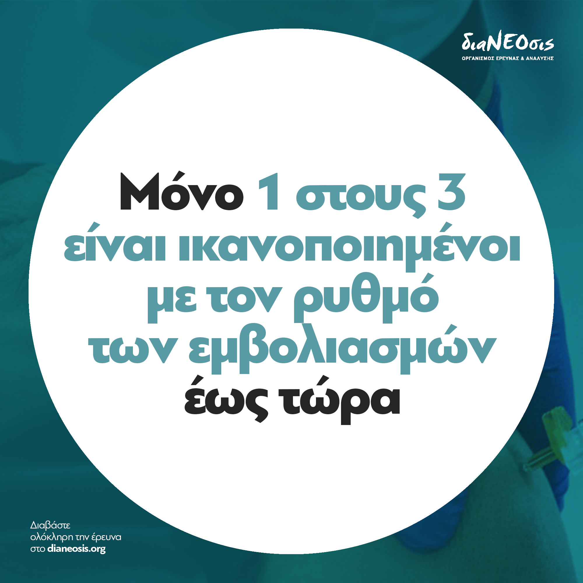 Μόνο 1 στους 3 είναι ικανοποιημένοι με τον ρυθμό των εμβολιασμών έως τώρα.