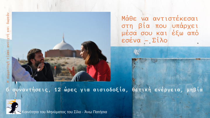 Το Μήνυμα του Σίλο μέσα από την κοινότητα των Άνω Πατησίων μας καλεί σε έξι συναντήσεις με σκοπό να γεμίσουμε δώδεκα ώρες με αισιοδοξία, θετική ενέργεια, να νιώσουμε τη μηβία και να πάρουμε εργαλεία που θα μας χρησιμεύσουν στη συνέχεια της πανδημίας αλλά και στην αντιμετώπιση των προκλήσεων της ζωής μας γενικότερα. Δεν είναι μία εμπορική πρωτοβουλία αλλά είναι μια κοινωνική δράση για εκείνες και εκείνους που θέλουν να συνεισφέρουν θετικά στις αλλαγές που συμβαίνουν σήμερα. Η συμμετοχή είναι δωρεάν.