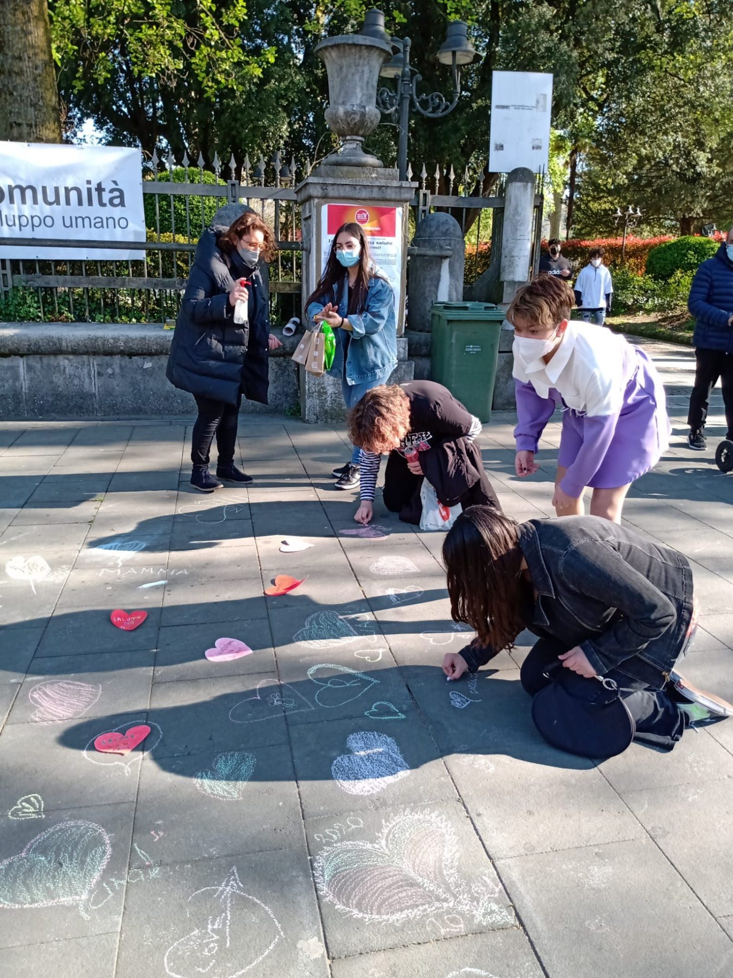 Η Κοινότητα για την Ανθρώπινη Εξέλιξη στο Αβελίνο ανταποκρίθηκε στην προσφυγή συμμετέχοντας στην εκστρατεία «Υγεία παγκόσμιο δικαίωμα». Το απόγευμα του Σαββάτου, 24 Απριλίου, μπροστά από τη Βίλα Κομουνάλε, συγκεντρώθηκαν μέλη μας με σκοπό να μνημονεύσουν τους νεκρούς της πόλης από την πανδημία, χαράζοντας με κιμωλία μια καρδιά στην άσφαλτο.
