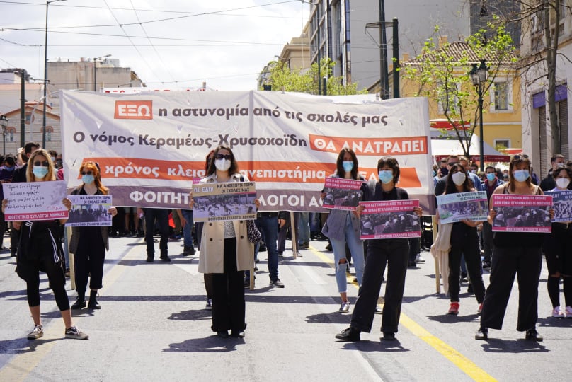 Ξανά σήμερα το φοιτητικό κίνημα στους δρόμους της Αθήνας ενώ η κατάληψη στο ΑΠΘ συνεχίζεται παρά το γεγονός ότι η κυβέρνηση σκέφτεται να υποχωρήσει στο θέμα της αστυνομίας στα Πανεπιστήμια. Νέες και νέοι διεκδικούν με αποστάσεις και μέτρα ασφαλείας. Δεν είναι μόνο η αστυνομία αλλά το τι μπορεί να κάνει μια κυβέρνηση κατά τη γνώμη τους με τα χρήματα που δίνονται για την αστυνομία και γενικά για τον εξοπλισμό των ένοπλων δυνάμεων: στέγη, παιδεία, νερό, υγεία, λεωφορεία και ανοιχτά Πανεπιστήμια. Για μια ακόμα φορά στέλνουν ηχηρό μήνυμα στο Υπουργείο Παιδείας και στον Πρωθυπουργό, καταστώντας το κυβερνητικό αφήγημα περί “πρακτικών ασκήσεων φοιτητών” του Άγγελου Συρίγου ψευδές. Επιστρατεύουν στίχους από τον Ρίτσο για να αντιπαρατεθούν με “την ομίχλη”: