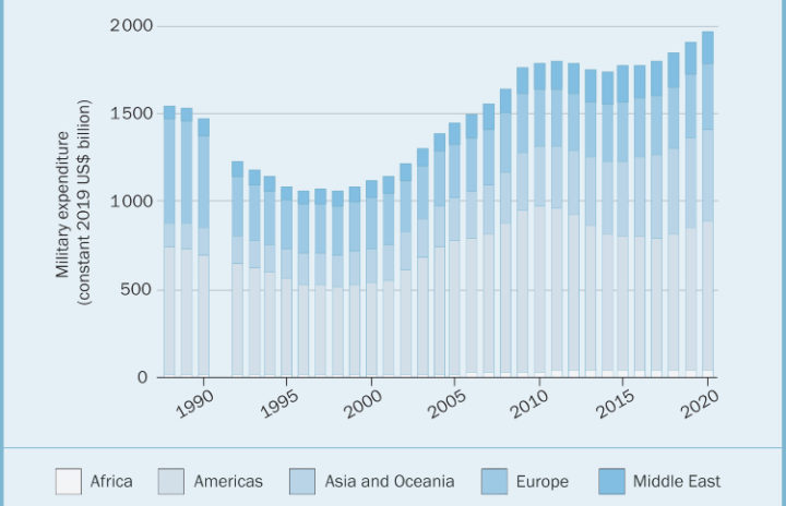 Οι συνολικές παγκόσμιες στρατιωτικές δαπάνες αυξήθηκαν σε 1.981 δισεκατομμύρια δολάρια πέρυσι, μια αύξηση 2,6 τοις εκατό από το 2019, σύμφωνα με τα νέα στοιχεία που δημοσιεύθηκαν σήμερα από το Διεθνές Ινστιτούτο Ερευνών για την Ειρήνη της Στοκχόλμης (SIPRI). Οι πέντε χώρες με τις υψηλότερες δαπάνες για το 2020, οι οποίες μαζί ανήλθαν στο 62 τοις εκατό των παγκόσμιων στρατιωτικών δαπανών, ήταν οι Ηνωμένες Πολιτείες, η Κίνα, η Ινδία, η Ρωσία και το Ηνωμένο Βασίλειο. Οι στρατιωτικές δαπάνες της Κίνας αυξήθηκαν για 26η συνεχή χρονιά.