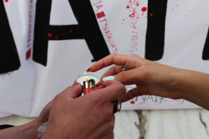 Περίπου 200 θηλυκότητες και αρρενωπότητες ντυμένες στα μαύρα κράτησαν ένα κερί για να τιμήσουν τη μνήμη όλων των γυναικών που σκοτώθηκαν από τον πρώην ή τον νυν, από τον κακοποιητή τους. Κύρια συνθήματα όπως «Όχι άλλες νεκρές», «Το όχι σημαίνει όχι», «Η πατριαρχία δολοφονεί», «Πες το με το όνομά του ΓΥΝΑΙΚΟΚΤΟΝΙΑ» κυριάρχησαν στην διαμαρτυρία.