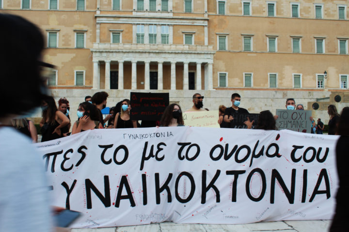 Με αφορμή τη στυγνή γυναικοκτονία της Καρολάιν Κράουτς από τον σύζυγό της, Μπάμπη Αναγνωστόπουλο, το απόγευμα του Σαββάτου 19 Ιουνίου γυναικείες και φεμινιστικές οργανώσεις φώναξαν “Καμία Μόνη” μπροστά από την Βουλή και απαίτησαν ο όρος γυναικοκτονία να συμπεριληφθεί στον ποινικό κώδικα και να ακυρωθεί ο νόμος Τσιάρα.