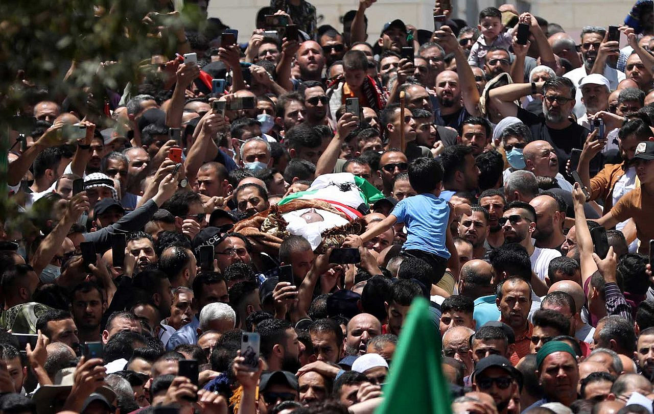 Πλήθος θρηνεί το σώμα του Παλαιστίνιου ακτιβιστή, Νίζαρ Μπανάτ, που πέθανε αμέσως μετά τη σύλληψή του από τις δυνάμεις ασφαλείας της Παλαιστινιακής Αρχής, στην πόλη Ραμάλα της Δυτικής Όχθης. Φωτογραφία Flash90.