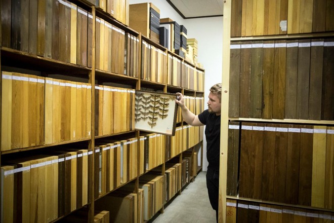 Υπάρχουν όμως και ράφια που κρατούν πραγματικά βιβλία. Σε ένα απ’ αυτά μέτρησα 31 τόμους από μια σειρά με τον τίτλο «Σκαθάρια της Κεντρικής Ευρώπης». Υπήρχε ένα βιβλίο 395 σελίδων στο οποίο ήταν καταχωρημένα και κατηγοριοποιημένα δείγματα της σφήκας αραχνών (σφήκες της οικογένειας Pompilidae), τα οποία συλλέχθηκαν από τη δυτική Παλεαρκτική Ζώνη από το 1948 έως το 2008. Ρώτησα τον Μάρτιν Σονγκ ο οποίος εκτελεί καθήκοντα επιμελητή στην EVK από το 1987 και ήταν ένας από τους συγγραφείς της Γερμανικής μελέτης αν αυτό το διάστημα των 50 ετών, που αναφέρονταν στο εξώφυλλο του βιβλίου, ήταν το διάστημα κατά το οποίο συλλέγονταν τα δείγματα. «Όχι» μου απάντησε. «Αυτό ήταν το διάστημα που χρειάστηκε ο συγγραφέας για τη μελέτη του».