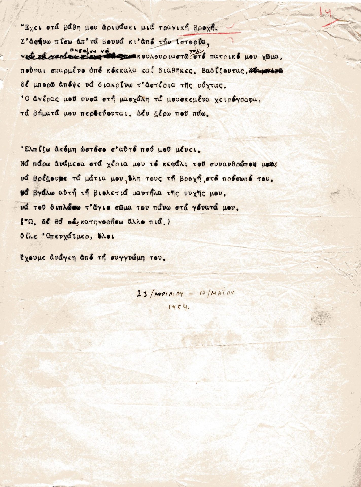 τήν καρδιά μας ἀδέσποτη κάτω ἀπ’ τά δάκρυά σας;