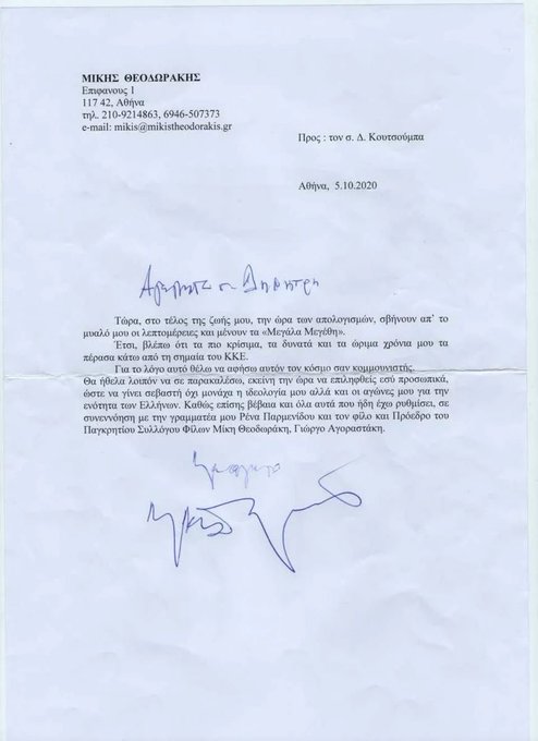 Μέρος της ραδιοφωνικής εκπομπής του Μάνου Χατζιδάκι για τον Μίκη Θεοδωράκη, το 1978, από το Music Paper, σε κείμενο του Μάνου Ορφανουδάκη: