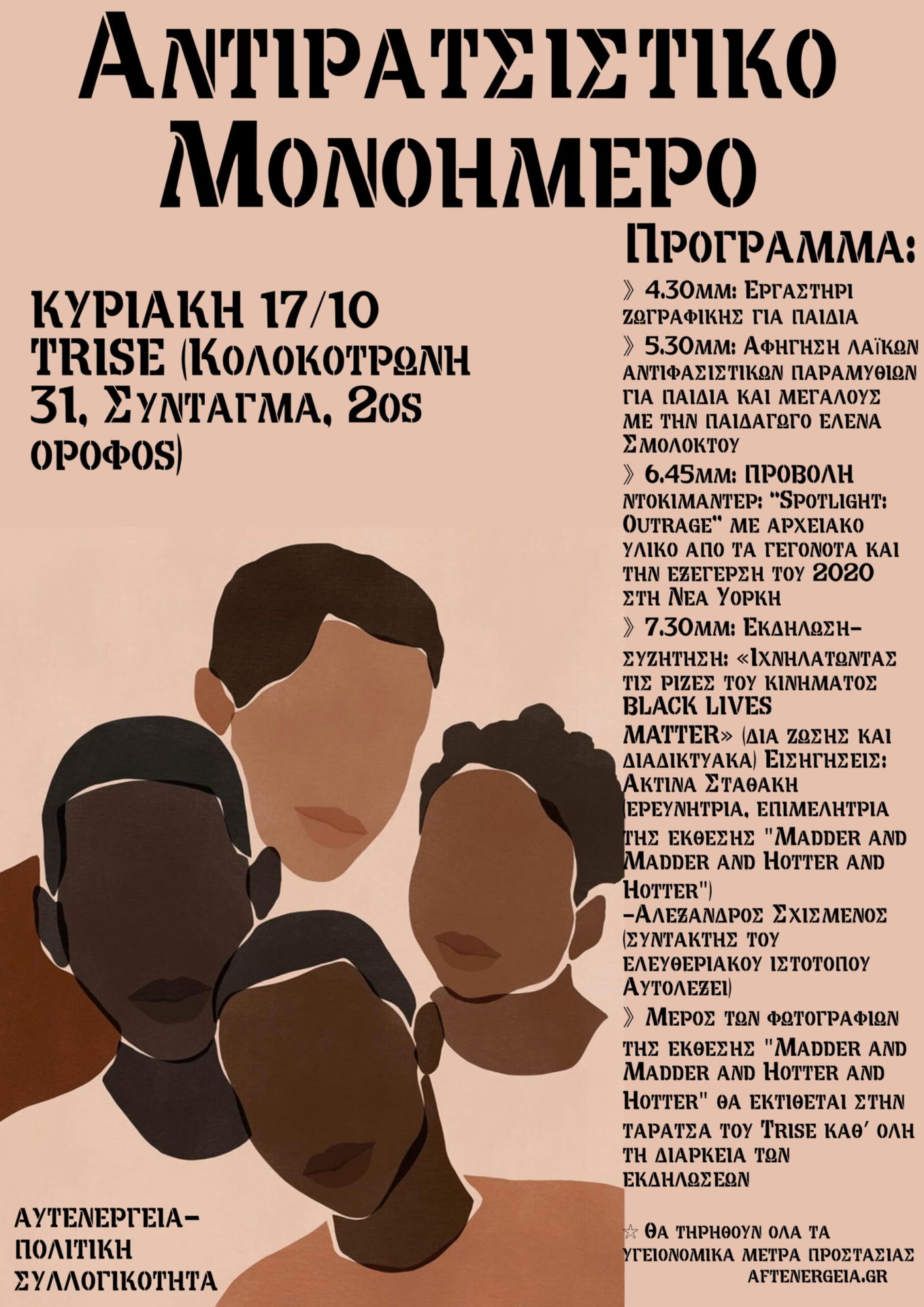 Η ΑΥΤΕΝΕΡΓΕΙΑ προσκαλεί όλες και όλους την Κυριακή 17 Οκτώβρη σε μία μέρα αντιρατσιστικών-αντιφασιστικών εκδηλώσεων στον αυτοδιαχειριζόμενο χώρο του TRISE: