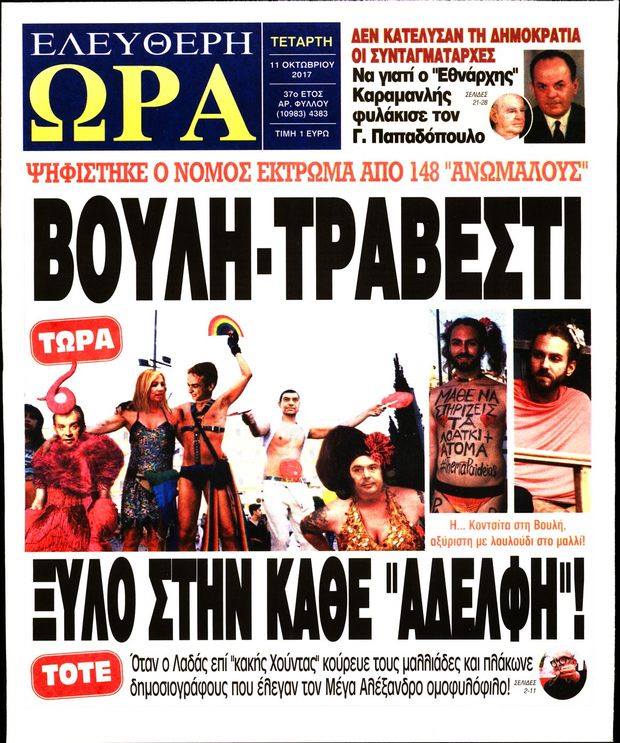 Στις 27 Οκτωβρίου 2021, το Η’ Τριμελές Πλημμελειοδικείο Αθηνών (Εισαγγελέας Γεωργία Μανατάκη – Πρόεδρος Βιργινία Μπέλλου – Δικαστές Νικόλαος Ντόβας – Φωτεινή Αλεκοπούλου) καταδίκασε τον εκδότη της Ελεύθερης Ώρας Γιώργο Μιχαλόπουλο για “δημόσια υποκίνηση μίσους ή βίας” με βάση το άρθρο 1.1 του αντιρατσιστικού νόμου 927/1979 [1] και του επέβαλε την ανώτερη δυνατή ποινή φυλάκισης 3 ετών και πρόστιμο 10.000 ευρώ (έναντι 20.000 ευρώ στην πρωτόδικη δίκη), για το ακόλουθο πρωτοσέλιδο της 11 Οκτωβρίου 2017: