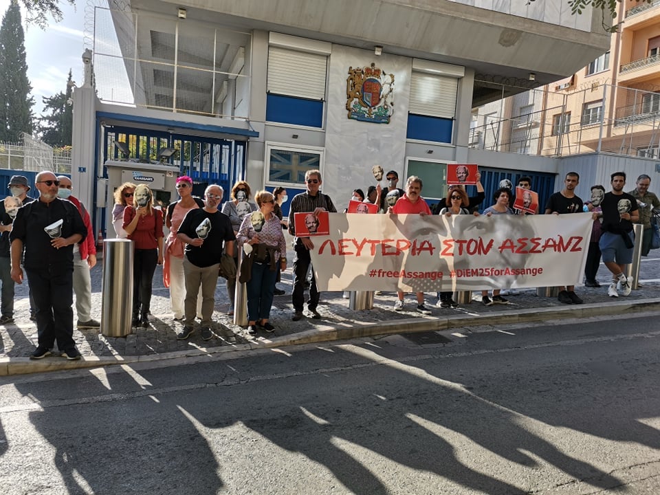 Σημείωση από την ελληνική συντακτική ομάδα: Το περασμένο Σάββατο 23 Οκτωβρίου, μέλη και φίλοι του ΜέΡΑ25 και του ευρωπαϊκού κινήματος DiEM25 συγκεντρώθηκαν έξω από τη Βρετανική Πρεσβεία στην Αθήνα ζητώντας την απελευθέρωση του Τζούλιαν Ασάνζ. Την ίδια μέρα, μια μεγάλη ομάδα φορέων και πολιτών έκανε πορεία στο Λονδίνο, από τα γραφεία του BBC προς το Ανώτατο Δικαστήριο του Ηνωμένου Βασιλείου.