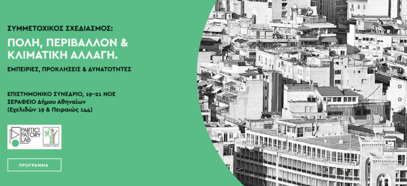 Το 1ο συνέδριο «Συμμετοχικός Σχεδιασμός: Πόλη, περιβάλλον και κλιματική αλλαγή. Εμπειρίες, Προκλήσεις και Δυνατότητες» 19, 20, 21 Νοεμβρίου, Σεράφειο Δήμου Αθηναίων πραγματοποιείται σε μια συγκυρία γεμάτη προκλήσεις για το μέλλον του συμμετοχικού σχεδιασμού ως μεθοδολογίας σχεδιασμού και άσκησης πολιτικής.
