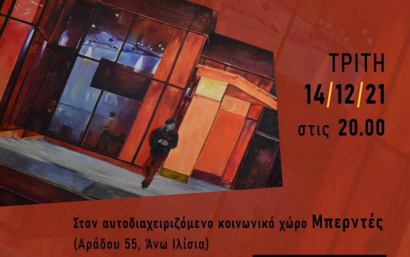 στον αυτοδιαχειριζόμενο κοινωνικό χώρο ΜΠΕΡΝΤΕΣ (Aράδου 55, Άνω Ιλίσια – πλ. Κύπρου, 6η στάση λεωφ. 220-221)