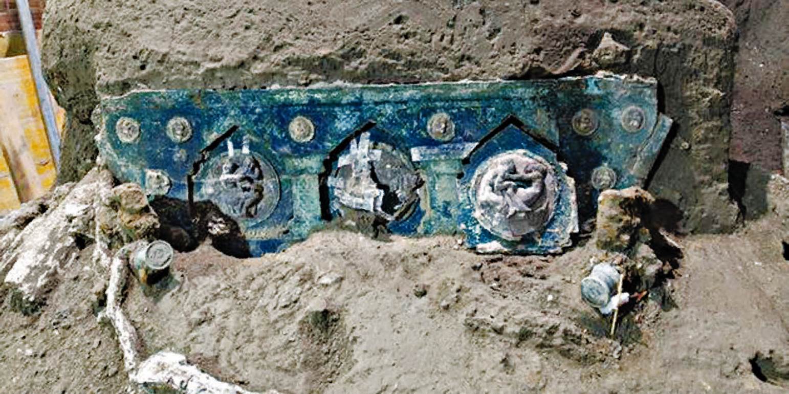 Μια ακόμα συναρπαστική αρχαιολογική ανακάλυψη έφερε στο φως τον Μάρτιο η σκαπάνη στην Πομπηία. Κάτω από το στρώμα τέφρας του Βεζούβιου, που κάλυψε τα πάντα στις 24 Αυγούστου του 79 μ.Χ., βρέθηκε ένα ρωμαϊκό άρμα από μια έπαυλη έξω από την πόλη, το οποίο ήταν σχεδόν άθικτο. Το σχεδόν τέλεια διατηρημένο τετράτροχο άρμα, το οποίο ήταν κατασκευασμένο από ορείχαλκο και κασσίτερο, βρέθηκε κοντά στους στάβλους μιας αρχαίας έπαυλης στην Τσίβιτα Τζουλιάνα, περίπου 700 μέτρα από τα τείχη της αρχαίας Πομπηίας.