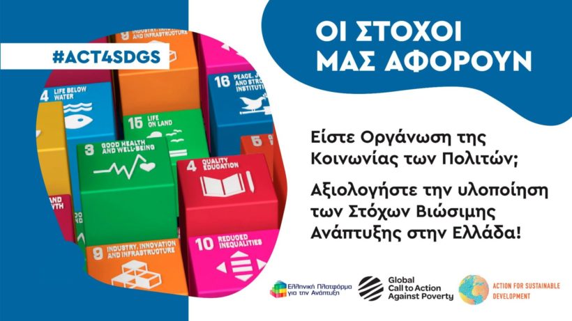 Με στόχο μία συμπεριληπτική και αντιπροσωπευτική αξιολόγηση, η Πλατφόρμα για την Ανάπτυξη καλεί τις Οργανώσεις να αφιερώσουν χρόνο συμπληρώνοντας το ερωτηματολόγιο στο https://tinyurl.com/SDGReviewGR