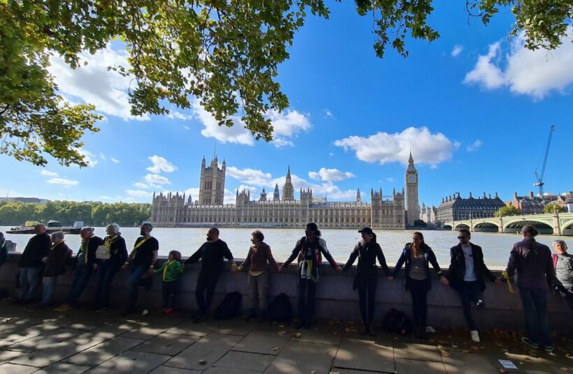 Χιλιάδες άνθρωποι συγκεντρώθηκαν χτες στο Λονδίνο για να σχηματίσουν μια ανθρώπινη αλυσίδα γύρω από το βρετανικό κοινοβούλιο ζητώντας την απελευθέρωση του Τζούλιαν Ασάνζ, ο οποίος βρίσκεται ακόμα σε βρετανική φυλακή υψίστης ασφαλείας.