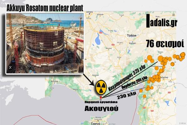 Οι καταστροφικοί σεισμοί της 7-2-2023, μεγέθους 7,8 Ρίχτερ στην Τουρκία επανάφεραν στο προσκήνιο το θέμα της επικινδυνότητας του υπό κατασκευήν πυρηνικού εργοστασίου στο Άκκουγιου.