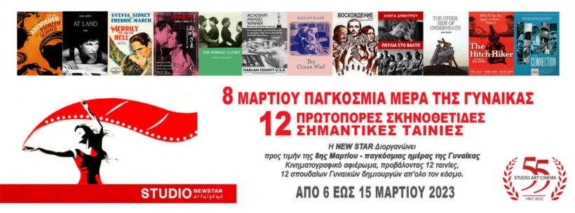 Η NEW STAR διοργανώνει προς τιμήν της 8ης Μαρτίου – Παγκόσμιας ημέρας της Γυναίκας Κινηματογραφικό αφιέρωμα από 6 έως 15 Μαρτίου, προβάλλοντας 12 ταινίες, 12 σπουδαίων Γυαικών δημιουργών απ’όλο τον κόσμο.