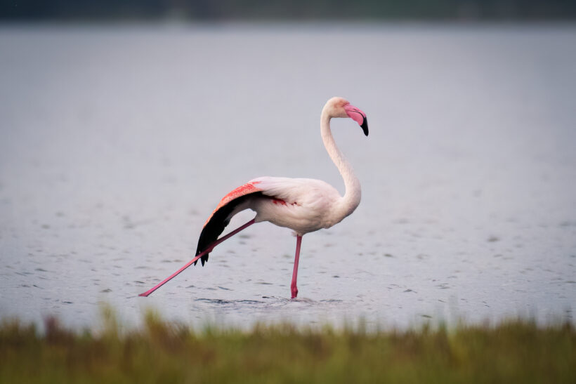Νεαρό Φοινικόπτερο στον υγροβιότοπο του Βουρκαρίου Μεγάρων, φωτογραφία Σωτηρία Γιαννακοπούλου.