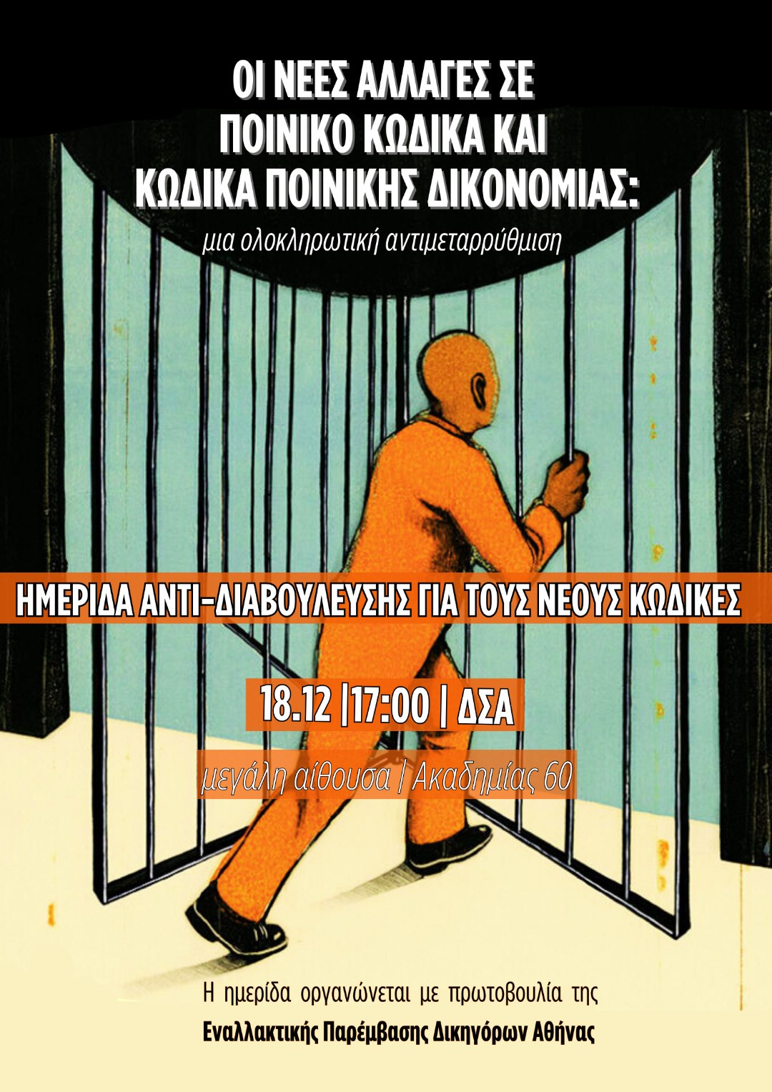 Η ημερίδα οργανώνεται με πρωτοβουλία της Εναλλακτικής Παρέμβασης Δικηγόρων Αθήνας.