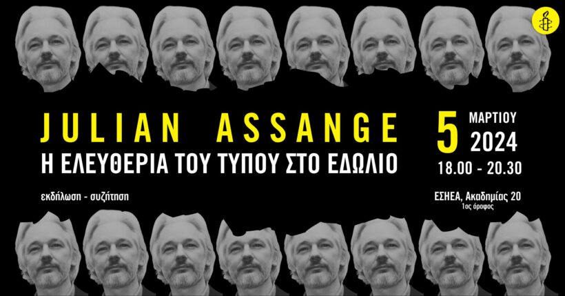 Το Ελληνικό Τμήμα της Διεθνούς Αμνηστίας διοργανώνει εκδήλωση-συζήτηση με τίτλο «Julian Assange: Η ελευθερία του τύπου στο εδώλιο».