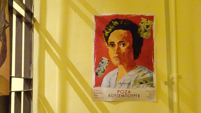 Την Τρίτη 6 Μαρτίου 2024 η οργάνωση “Φίλοι της Φύσης” μας πρόσφεραν μια κατανυκτική βραδιά αφιερωμένη στην Ρόζα Λούξεμπουργκ. Μέσα από αφηγήσεις της ίδιας, από τα δώδεκα δικά της βοτανολογικά λευκώματα [συσκευασμένα σημειωματάρια φυτών όπως τα έλεγε η ίδια], μία δραματουργική σύνθεση και τραγούδια, ανέλαβαν να τονίσουν δύο ακόμα ιδιότητες της περίφημης αυτής προσωπικότητας, πέραν από τη γνωστή σε όλο τον δυτικό κόσμο – αυτή της επαναστάτριας: η Λούξεμπουργκ ήταν βοτανολόγος και φυσιολάτρης.