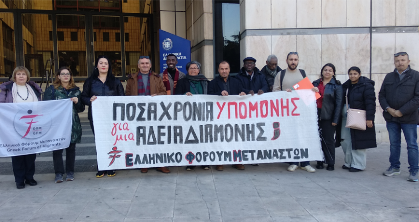 Σύσσωμο το Διοικητικό Συμβούλιο του Ελληνικού Φόρουμ Μεταναστών πραγματοποίησε στις 12:00 μ.μ. Παράσταση Διαμαρτυρίας στο Υπουργείο Μετανάστευσης και Ασύλου και κατέθεσε Υπόμνημα για το θέμα που επείγει και χρήζει άμεσης επίλυσης: οι χρόνιες καθυστερήσεις στις εκδόσεις και τις ανανεώσεις των αδειών διαμονής χιλιάδων μεταναστ(ρι)ών και προσφύγων που ζουν στην χώρα. Γεγονός που εμποδίζει την συνέχεια στη ζωή χιλιάδων ανθρώπων και των οικογενειών τους, θέτοντάς τους σε διαρκή κατάσταση αναμονής για την εργασία, την εκπαίδευση, την υγεία, τη ζωή τους.