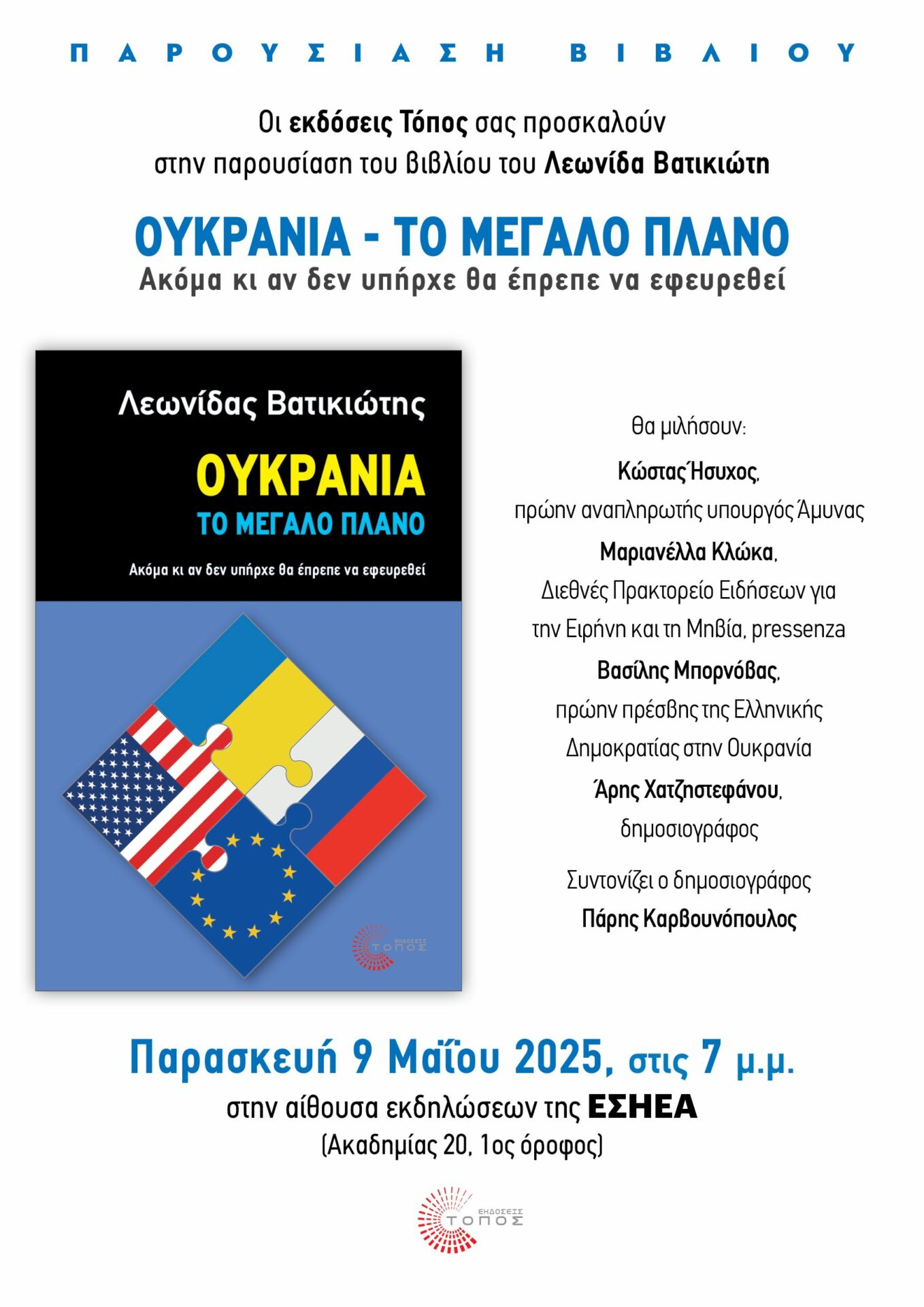 «Ουκρανία – το μεγάλο πλάνο, ακόμα κι αν δεν υπήρχε θα έπρεπε να εφευρεθεί», που κυκλοφορεί από τις εκδόσεις Τόπος.