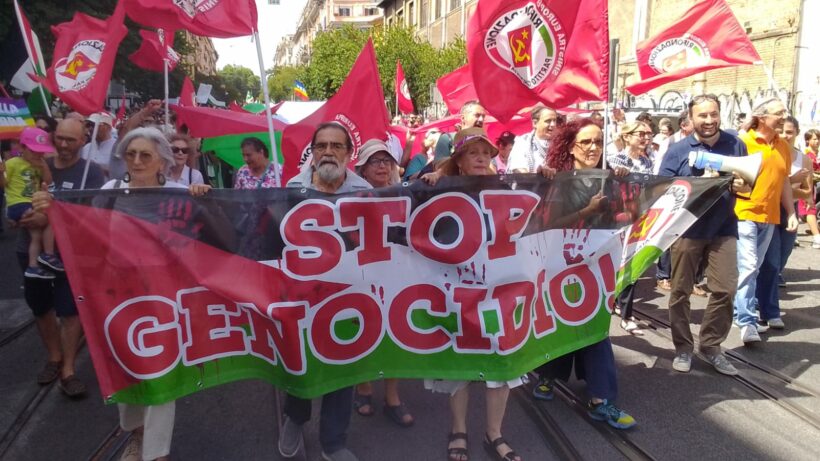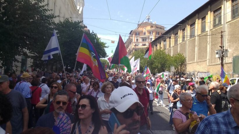 Ήταν ένα ετερόκλητο λαϊκό κύμα που καταδίκασε απερίφραστα τη γενοκτονία που λαμβάνει χώρα στην Παλαιστίνη και τη Γάζα με την απαραίτητη συνενοχή των Ηνωμένων Πολιτειών και των περισσότερων (αλλά ευτυχώς όχι όλων) των χωρών της ΕΕ. Η καταδίκη χωρίς έφεση προς τη γενοκτόνο κυβέρνηση Νετανιάχου έρχεται να προστεθεί στην καταδίκη της ξεδιάντροπης πολιτικής της ιταλικής κυβέρνησης που βρίσκεται, όπως πάντα, στη λάθος πλευρά της ιστορίας. Υποστηρικτές της πορείας είναι οι τρεις πολιτικές δυνάμεις που αποφάσισαν τελικά, κάλλιο αργά παρά ποτέ, να καταθέσουν κοινοβουλευτική πρόταση που, αν εγκριθεί, θα ανατρέψει την τρέχουσα εξωτερική πολιτική της Ιταλίας. Το στοίχημα του Δημοκρατικού Κόμματος, του Κινήματος 5 Αστέρων και της Πράσινης Αριστερής Συμμαχίας κερδήθηκε καθώς η συμμετοχή ξεπέρασε κάθε προσδοκία.