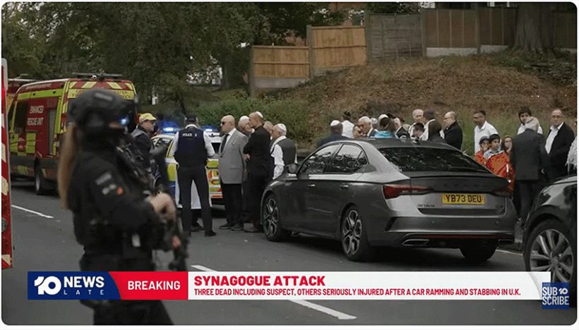 “Καταδικάζουμε τη φρικτή αντισημιτική επίθεση στη Συναγωγή της Εβραϊκής Κοινότητας του Χίτον Παρκ, στο βόρειο Μάντσεστερ, που στοίχισε τη ζωή σε δύο άτομα.
