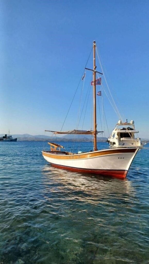 Θανάσης: Για λίγο υπήρχε εμπόριο τροπικό, από την Ασία, από την Αφρική, Βραζιλία. Στις Σπέτσες, πλέον, το εμπόριο είναι περιορισμένο. Μπορεί να χρησιμοποιείται το ξύλο κάποιων ευκάλυπτων όταν κλαδεύονται. Τα υγιή σπετσιώτικα πεύκα είναι δυσεύρετα, δύσκολα τα εντοπίζεις για να κάνεις εργασία με το ξύλο τους, γιατί από τις θερμοκρασίες που έχει αναπτύξει εδώ ο τόπος, τα τελευταία χρόνια, χωρίς βροχή, έχουν ξεραθεί, έχουν σκάσει τα ξύλα αυτά. Οπότε, υπάρχουν έμποροι που τα φέρνουν από τη Βόρεια Ελλάδα, είτε από την Αμερική, από συγκεκριμένους τόπους, όπου υπάρχουν συγκεκριμένα ξύλα που καλλιεργούνται για αυτόν τον λόγο. Στην Αγγλία, επίσης, υπάρχουν μέρη τα οποία, οι ξυλοναυπηγοί εκεί καλλιεργούν βελανιδιές, δρύες, μεγαλώνουν δέντρα τα οποία είναι προορισμένα για τη ξυλοναυπηγική. Το έχουμε σκεφτεί κι εμείς εδώ να το κάνουμε. Ορισμένοι δεν πρόσεχαν και στη θέση αυτού που έκοβαν, δεν φύτευαν άλλο. Ένας λόγος που σταμάτησε η ξυλοναυπηγική βιομηχανία ήταν αυτός, υπήρξε έλλειψη δένδρων σε τεράστιες ποσότητες. Εμάς όμως μας αρέσει να υπάρχει κυκλική συνέχεια, σεβόμαστε τη Φύση. Γι’ αυτό και δουλέψαμε και κατασκευάσαμε τα δύο ηλεκτρικά σκάφη.