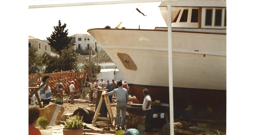 Θανάσης: Στο ξυλοναυπηγείο. Έχει διαφορά. Καρνάγιο είναι ένας τόπος στον οποίο συντηρούνται τα σκάφη, αφού έχει φτιαχτεί στο ξυλοναυπηγείο. Αλλά, όλος ο κόσμος δεν ξέρει αυτό το πράγμα, το λέει «καρνάγιο». Εδώ και άνθρωποι του συναφιού μας δεν το ξέρουν αυτό. Του παππού μου ήταν ξυλοναυπηγείο – κατασκευή και όχι συντήρηση. Έτσι, απ’ αυτό βιοπορίστηκαν. Ήταν κέντρο ναυπήγησης. Όλο δημιουργούσαν, δεν είχαν τον χρόνο να κάνουν συντήρηση την εποχή του παππού μου και του μπαμπά μας.