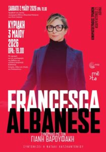 Με αφορμή και την κυκλοφορία του βιβλίου της «Όταν ο κόσμος κοιμάται – Ιστορίες, λέξεις και πληγές της Παλαιστίνης», η Φραντσέσκα Αλμπανέζε συνομιλεί με τον Γιάνη Βαρουφάκη και το κοινό. Την εκδήλωση συντονίζει η δημοσιογράφος, Ναταλί Χατζηαντωνίου. Πριν την ανοιχτή εκδήλωση της Κυριακής 3/5, η ειδική εισηγήτρια του ΟΗΕ, θα παραχωρήσει ανοιχτή συνέντευξη τύπου σε δημοσιογράφους στον Κινηματογράφο Τριανόν (Κοδριγκτώνος 21, Αθήνα).