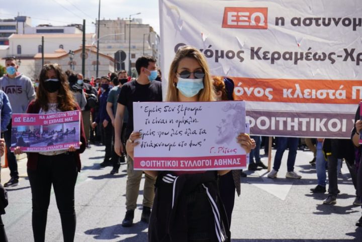 Ξανά σήμερα το φοιτητικό κίνημα στους δρόμους της Αθήνας ενώ η κατάληψη στο ΑΠΘ συνεχίζεται παρά το γεγονός ότι η κυβέρνηση σκέφτεται να υποχωρήσει στο θέμα της αστυνομίας στα Πανεπιστήμια. Νέες και νέοι διεκδικούν με αποστάσεις και μέτρα ασφαλείας. Δεν είναι μόνο η αστυνομία αλλά το τι μπορεί να κάνει μια κυβέρνηση κατά τη γνώμη τους με τα χρήματα που δίνονται για την αστυνομία και γενικά για τον εξοπλισμό των ένοπλων δυνάμεων: στέγη, παιδεία, νερό, υγεία, λεωφορεία και ανοιχτά Πανεπιστήμια. Για μια ακόμα φορά στέλνουν ηχηρό μήνυμα στο Υπουργείο Παιδείας και στον Πρωθυπουργό, καταστώντας το κυβερνητικό αφήγημα περί “πρακτικών ασκήσεων φοιτητών” του Άγγελου Συρίγου ψευδές. Επιστρατεύουν στίχους από τον Ρίτσο για να αντιπαρατεθούν με “την ομίχλη”: