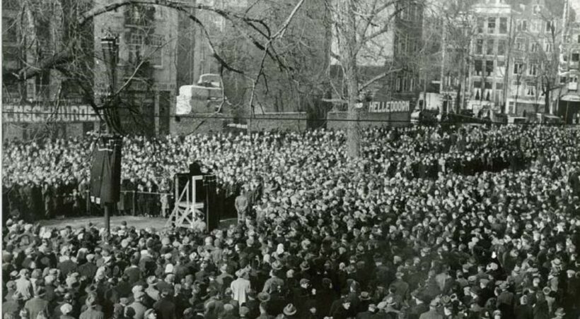 Στη φωτογραφία, είναι η πρώτη τέτοια μέρα μνήμης στο Άμστερνταμ, το 1946. Μια γενική απεργία στη μνήμη εκείνης της μοναδικής του 1941. Αν η Μιεν τεν Νταμ Πούτερς είχε επιζήσει ως τότε, το ξέρω πως είναι κάπου μέσα στη φωτογραφία.