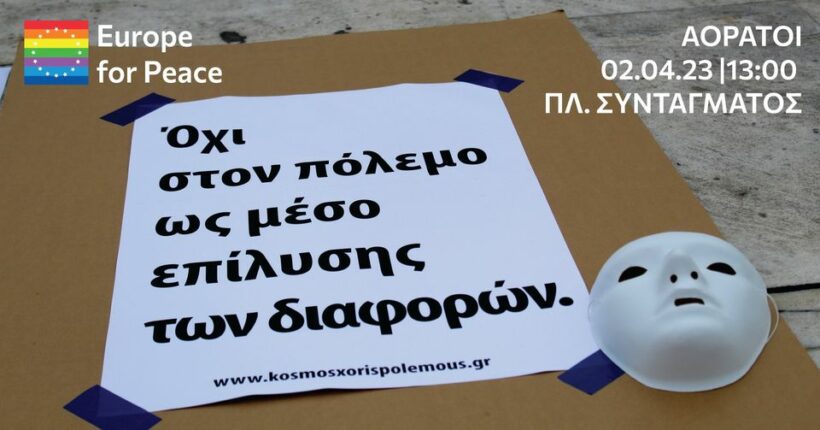 Οι Αόρατοι καλούν σε διαμαρτυρία κατά του πολέμου στην Ουκρανία και υπέρ της διπλωματίας της ειρήνης την Κυριακή, 2 Απριλίου στις 13.00 στο Σύνταγμα.