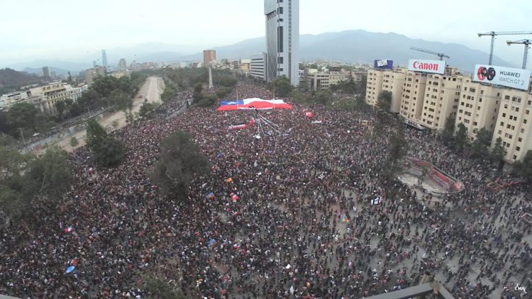 Στην Plaza Italia, στην καρδιά του Σαντιάγκο, δεν πέφτει καρφίτσα. Πρόκειται για μια γιορτή! Οι ποδοσφαιρικές ομάδες, οι χιλιάδες νέων που υψώνουν την ελπίδα τους, οι υπερήφανες γυναίκες, οι εργάτες, εργαζόμενοι που επιστρέφουν από τη δουλειά τους και απλοί αποφασισμένοι…