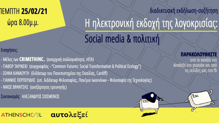 Διαδικτυακή εκδήλωση-συζήτηση: «Η ηλεκτρονική εκδοχή της λογοκρισίας: Social media & πολιτική»