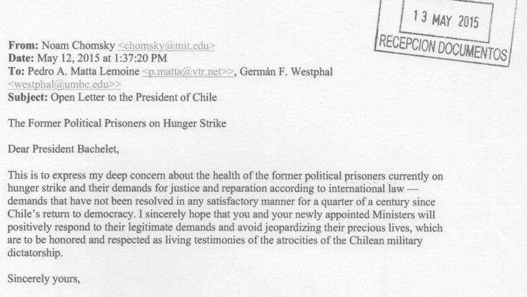 Carta abierta de Chomsky a Bachelet en apoyo a los ex Prisioneros Políticos en huelga de hambre