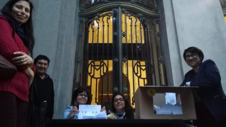 Escrutinio plebiscito nacional NO + AFP. FRONTIS DEL ARCHIVO NACIONAL, SANTIAGO DE CHILE, 29 de septiembre de 2017. Funcionarias del Archivo Nacional De Chile contabilizan los resultados de la mesa de votación de la cual se hicieron cargo desde primera…