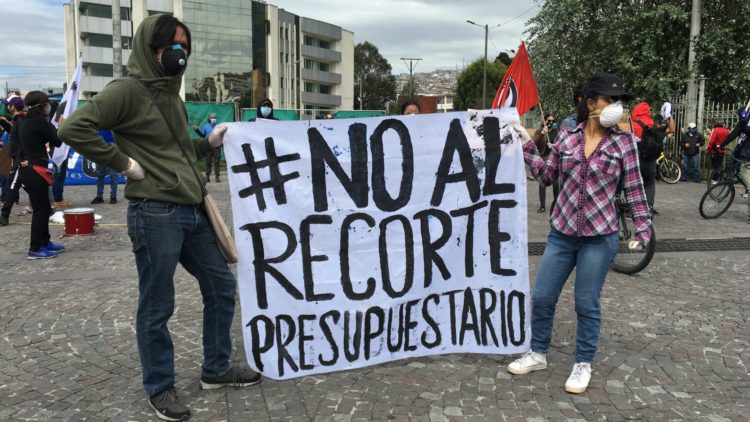 Plantón contra el recorte del presupuesto de la educación pública en Ecuador