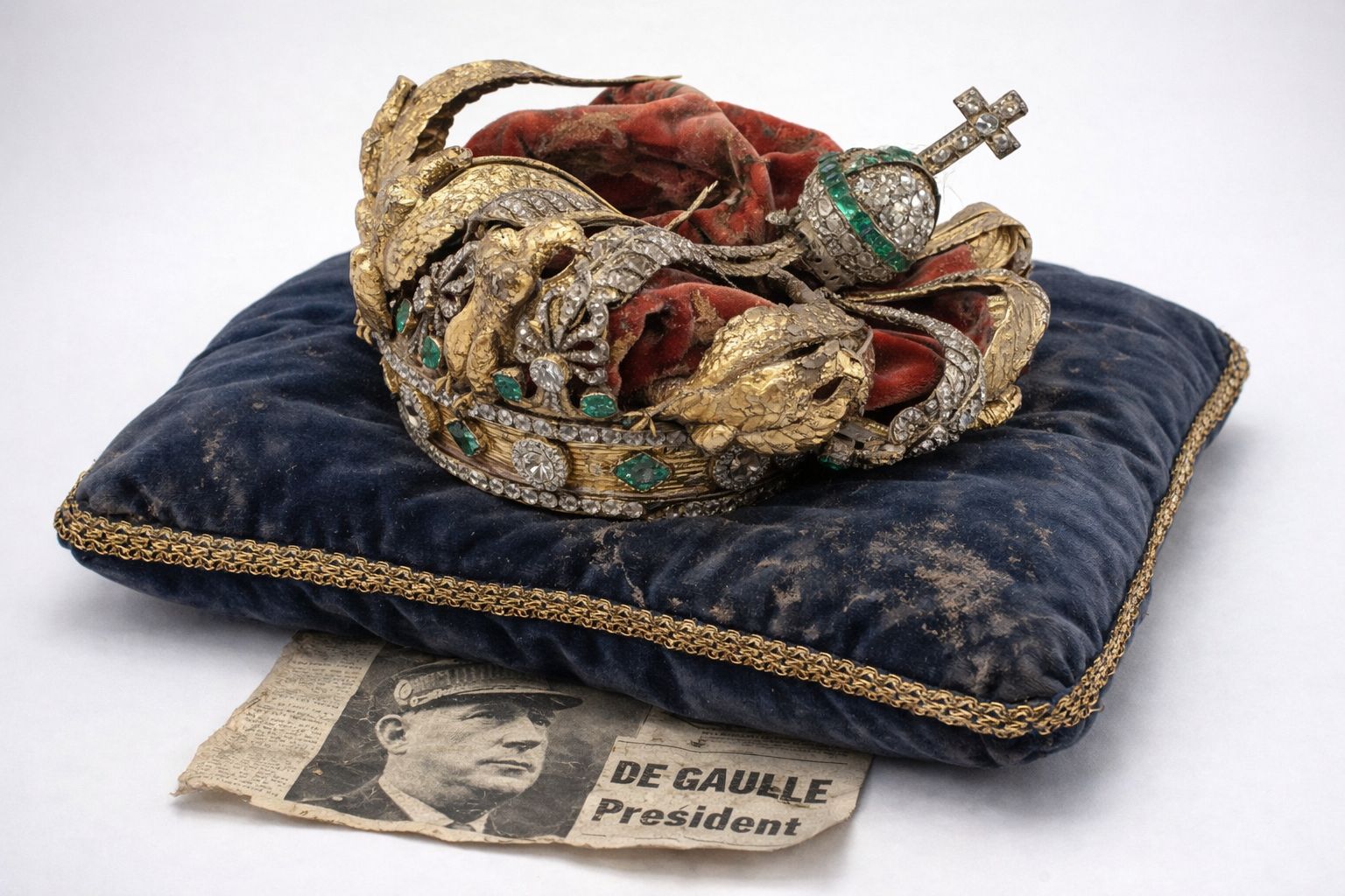 La imagen sobre estas líneas, es un recreación pero muestra el daño sufrido por la corona del siglo XIX; caída al suelo en la huida, seguro que rodó, abandonada como un objeto torpe, despojado de solemnidad. La historia del robo…