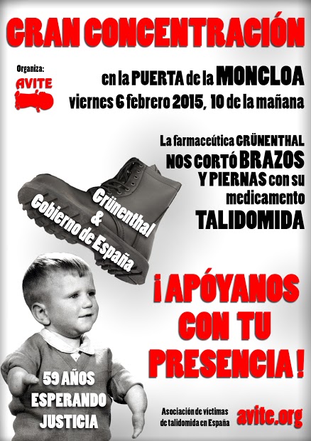 Los afectados por la Talidomida han convocado una nueva concentración ante el Palacio de la Moncloa (sede del gobierno) este viernes 6 de febrero, a las 10 de la mañana, para protestar por la indefensión que sufren después de cincuenta…